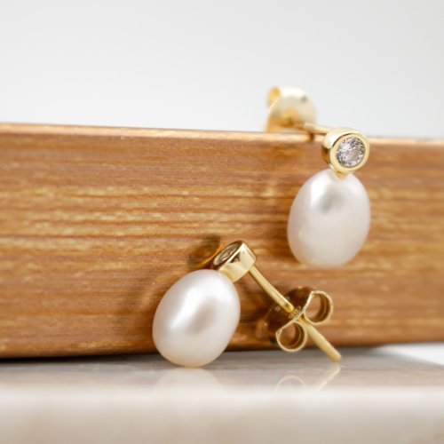 Gold Vermeil CZ Studs with Medium PearlRegular price $50.00 CADRegular priceUnit price / per-