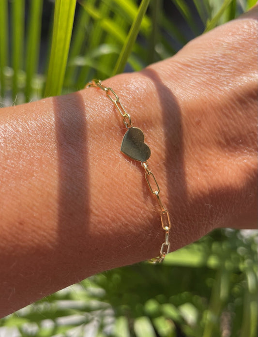 Gold Vermeil Heart Tag Paperclip Bracelet
