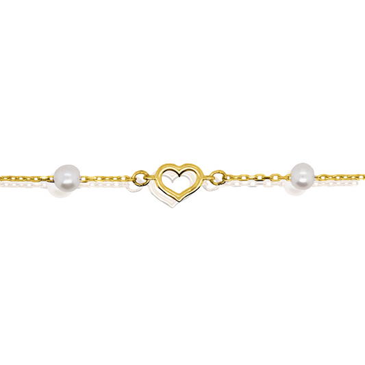 10K Gold Heart and Pearl By The Yard Bracelet