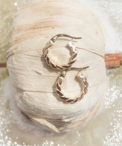 10K Solid Gold Twisted Rope Huggies Earrings