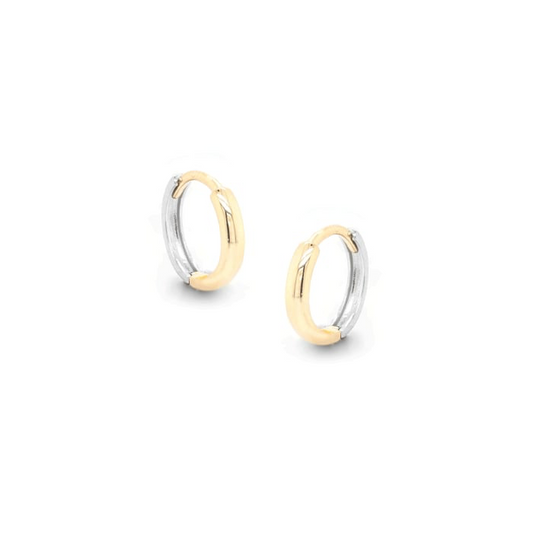 10K Solid Gold Two Tone Huggies Earrings