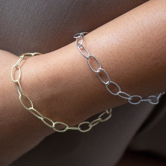 Sterling Silver Diamond Cut Oval Link Bracelet