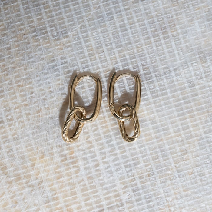 10K Solid Gold Textured Oval Link Huggies Earrings